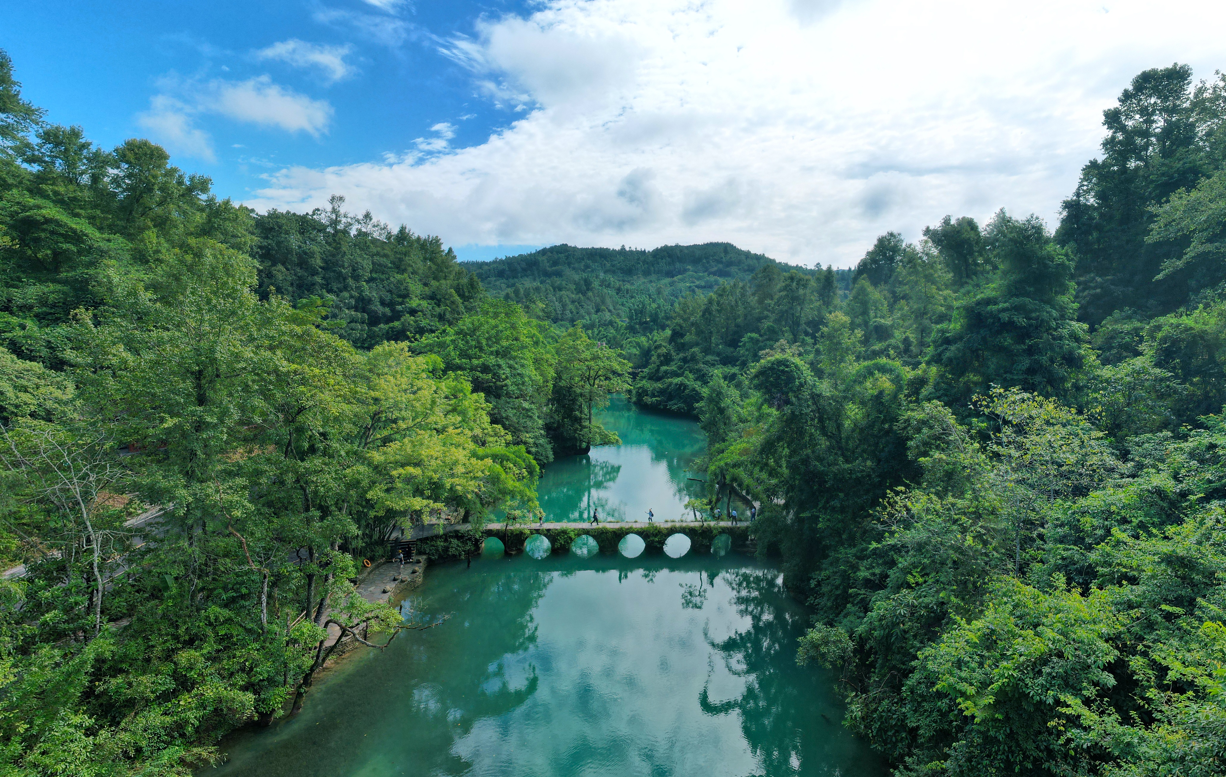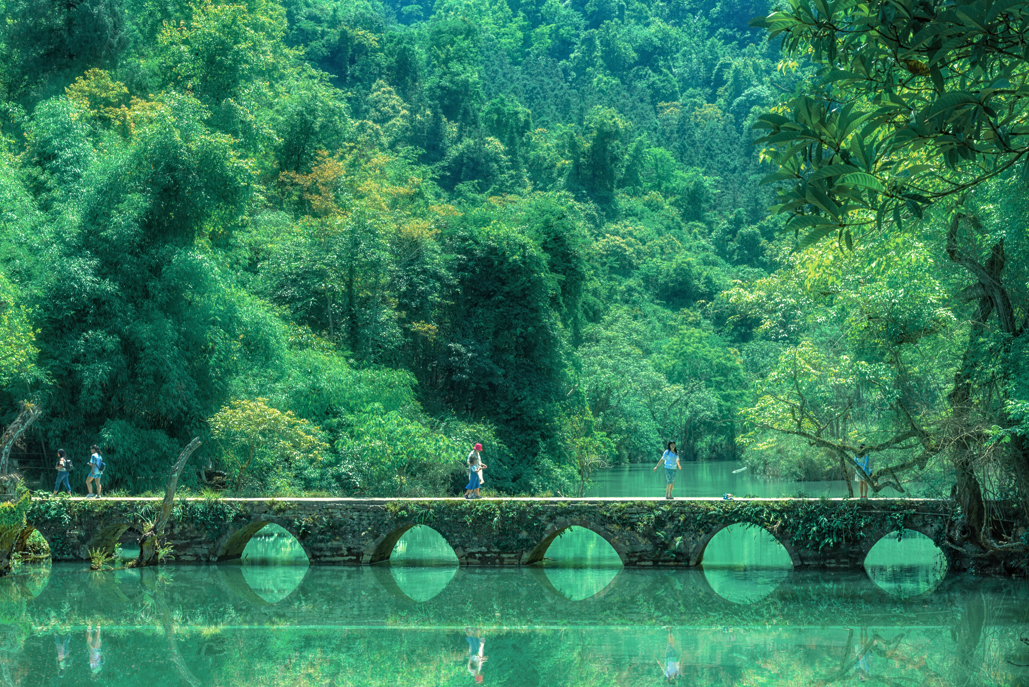 闯入这片翡翠色的碧水中,连呼吸都变得清凉起来了。一定要去一次荔波小七孔,邂逅人间绿宝石的胜景!荔波小七孔真的太适合夏天玩水了,一眼沦陷的纯绿色,不愧是世界上最触动心灵的风景区之一,主要包括大小七孔景区、卧龙潭、鸳鸯湖等景点,走进这满眼绿色和碧水瀑布中,无需滤镜,随手一拍都是绝美如画的风景大片!